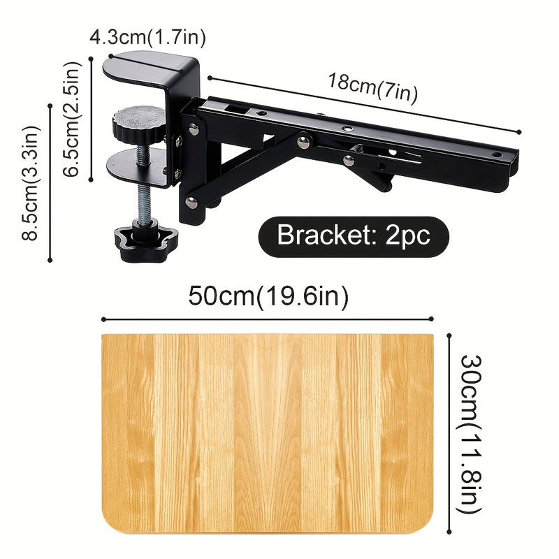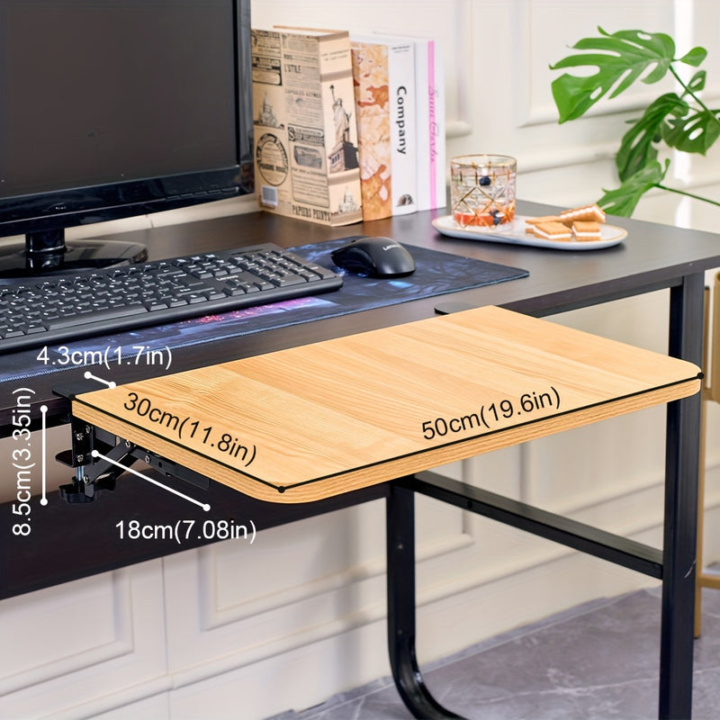 Tablero Plegable de Madera para Escritorio con Soporte Extensible + Base, 1.8 cm de Grosor sin Taladrar para Teclado (2 Bases + 1 Tablero), Estable y Seguro Sin Dañar la Mesa, Organizador de Escritorio y Cajones para Hogar, 40 cm / 50 cm
