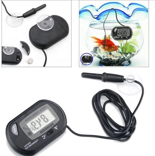 Este termómetro digital es ideal para acuarios de agua dulce o salada. Su diseño compacto y su sonda sumergible permiten un control confiable de la temperatura del agua, mientras que la pantalla LCD facilita la lectura rápida y precisa.
