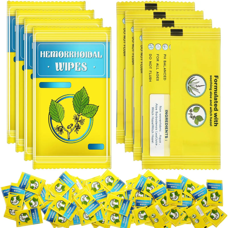 ,-Tamano portatil: estas toallitas para hemorroides desechables estan envueltas individualmente, el tamano de la bolsa es de aproximadamente 2.36 x 3.15 pulgadas, y cada toallita mide aproximadamente 5.5 x 7 pulgadas cuando esta desplegado, ligero y compacto, se puede colocar comodamente en el bolsillo o bolsa cuando salgas, adecuado para uso diario, viajes y emergencia