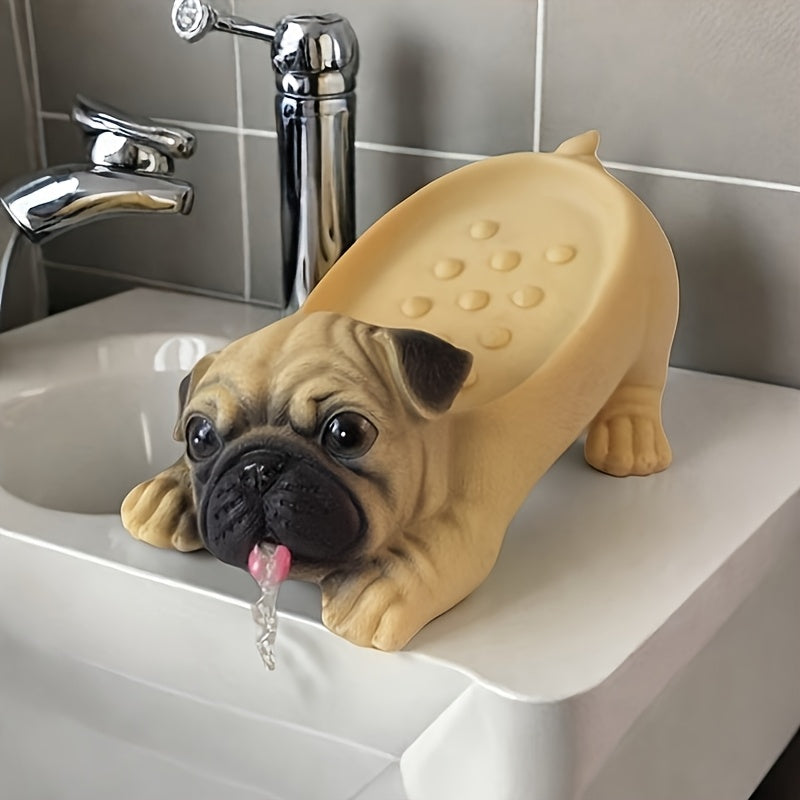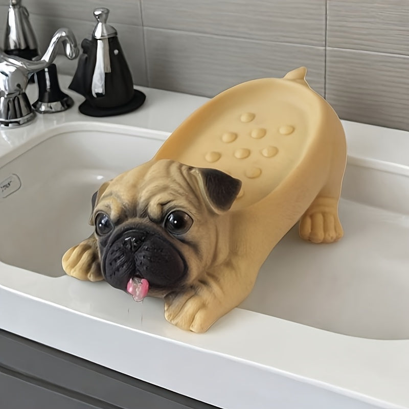 Jofaina de jabón en forma de perro pug encantador - Resina, ideal para baño, cocina y decoración de sala de estar, perfecta para sostener jabón líquido y detergentes, accesorio de baño | Diseño juguetón | Portajabón duradero, accesorios de perro pug