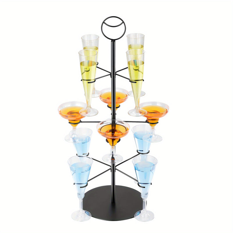 Elegante soporte de árbol de cóctel de 3 niveles con 12 soportes - Estante de exhibición de copas de champán con acabado negro para fiestas y eventos, construcción metálica, perfecto para organizar bebidas, soporte de árbol de cóctel