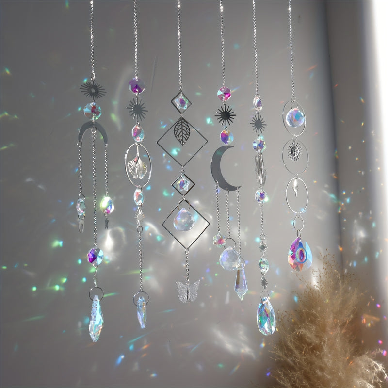 Clásico juego de 6 atrapasoles de cristal para jardín, atrapasoles de prisma para ventanas, adornos de araña para decoración del hogar, oficina, bodas y fiestas, sin plumas