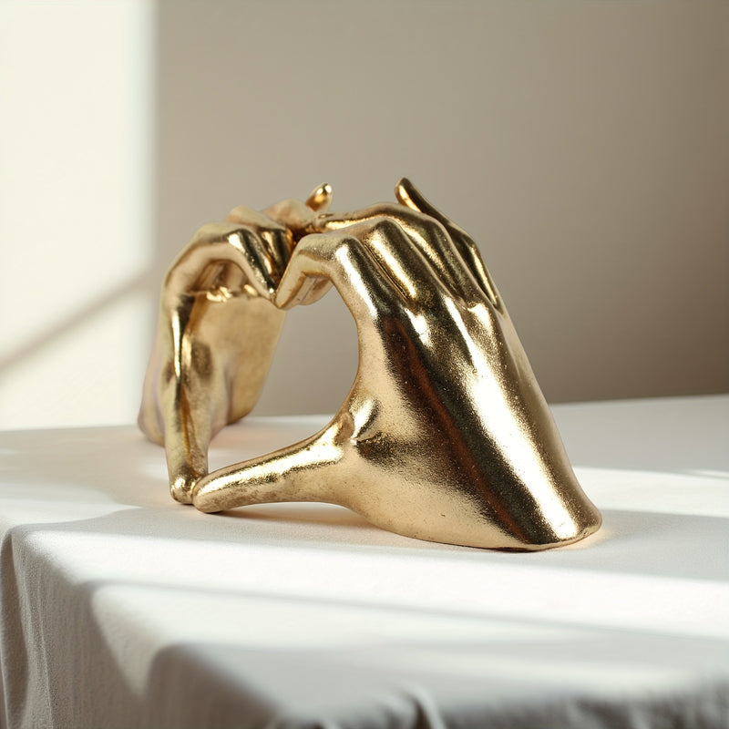 1pc Escultura abstracta de manos de amor en resina dorada, estatua decorativa para interiores/exteriores, acento versátil para la habitación, no necesita energía.